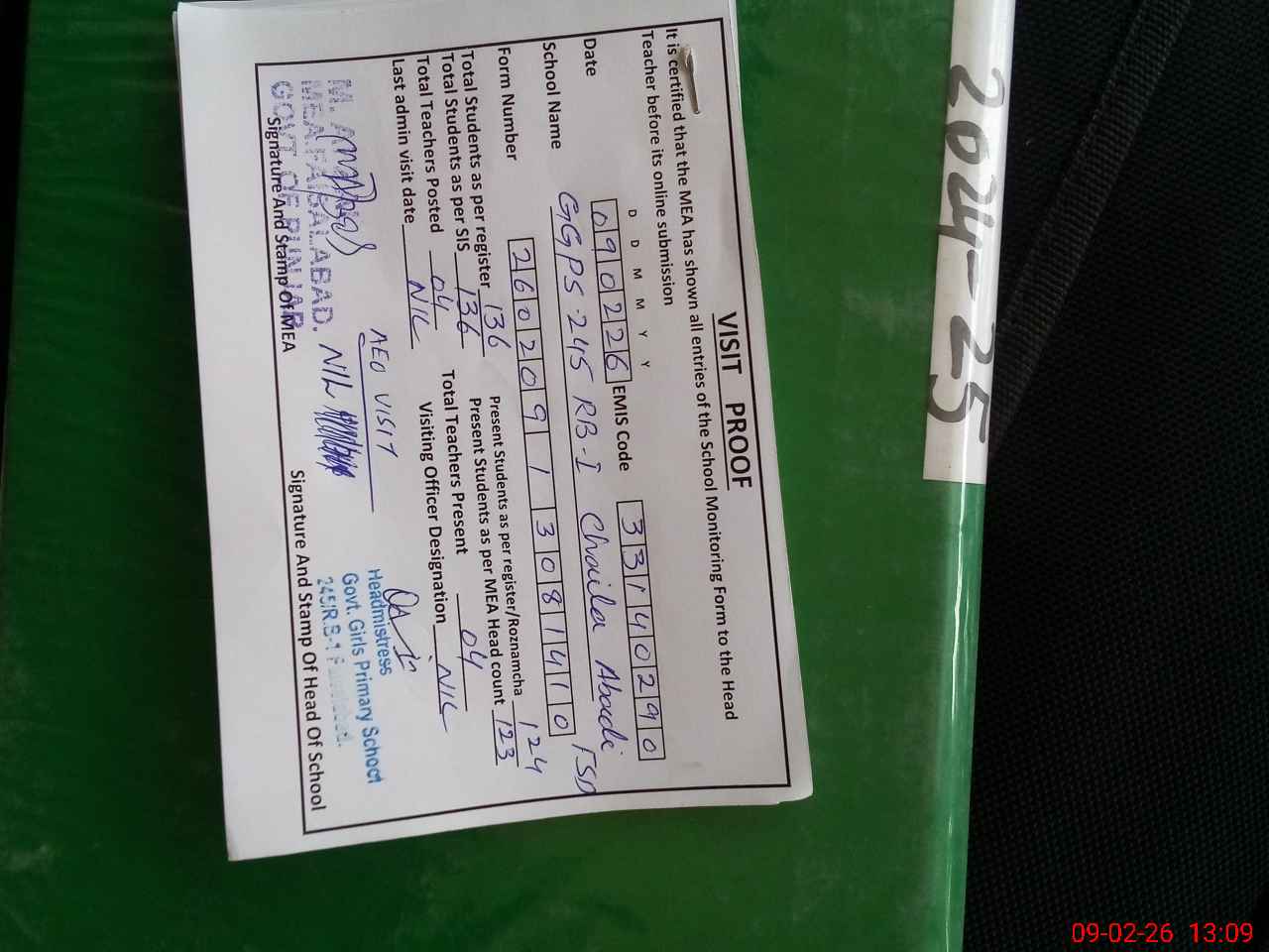 | EMIS Code: 33140290 | Name of School: GGPS CHAK 245 RB I ABADI CHAILA | |||