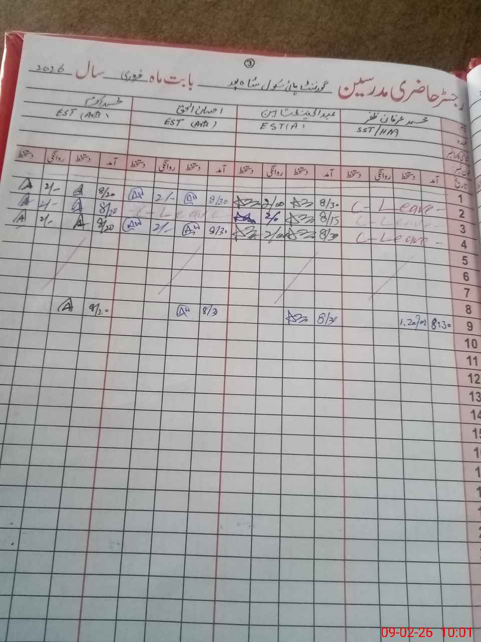 | CNIC | Full Name | Designation | R/C | Absence During Last Calender Month |
