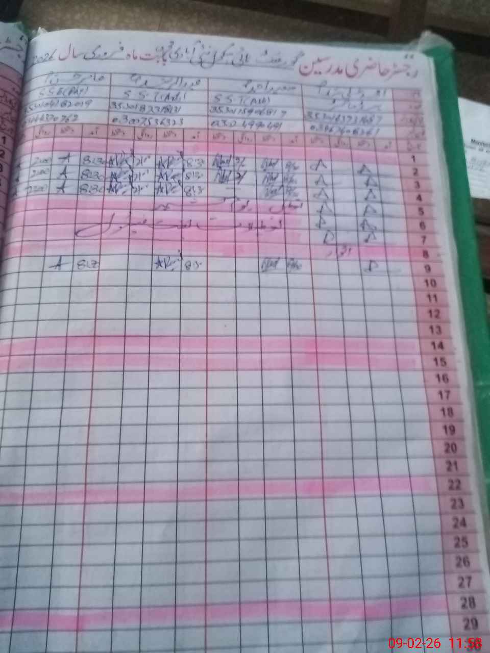 | CNIC | Full Name | Designation | R/C | Absence During Last Calender Month |