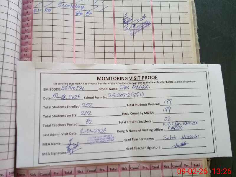 | Attendance Register | Head Teacher | MEA with School | Visit Proof |