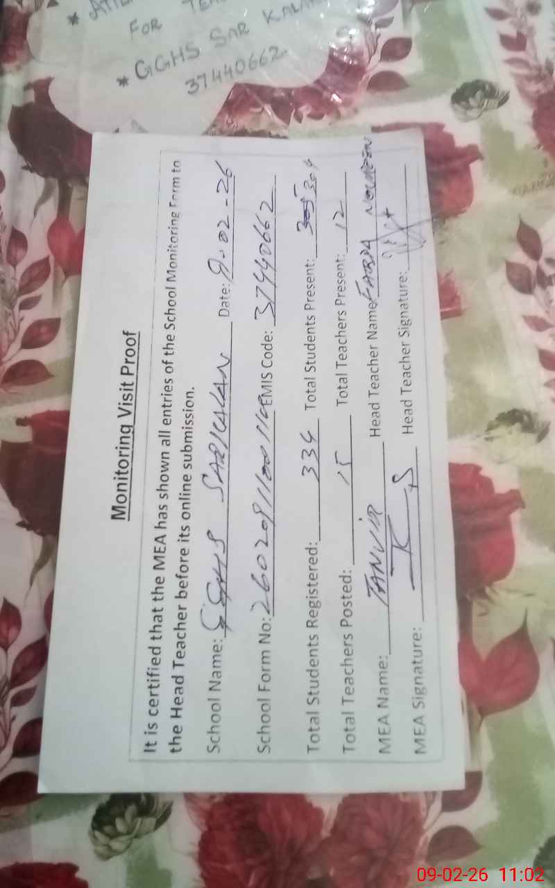 | EMIS Code: 37440662 | Name of School: GGHS SAR KALAN | |||