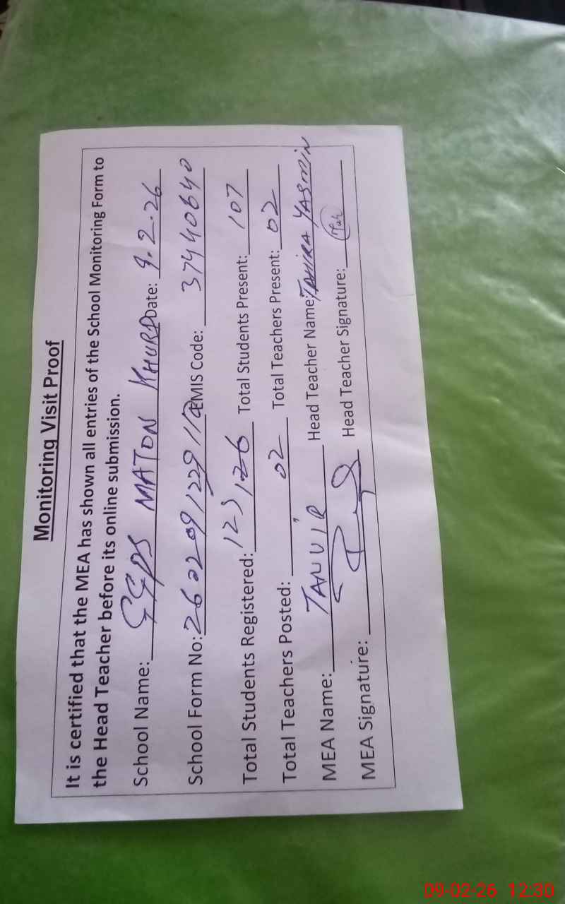 | EMIS Code: 37440640 | Name of School: GGPS MOTTON KHURD | |||