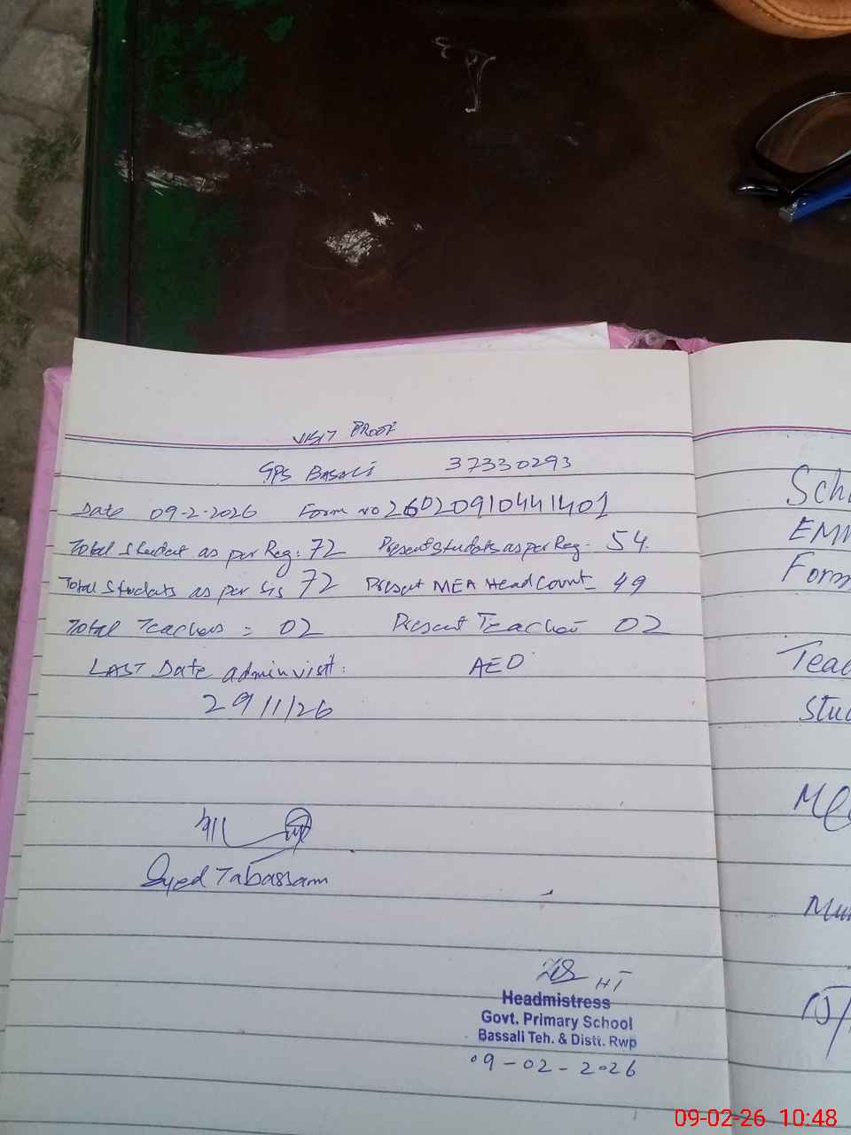 | Certified that this School was Inspected by the Undersigned MEA/DMO Today and the Information Stated Above is as Per Record. | |||||