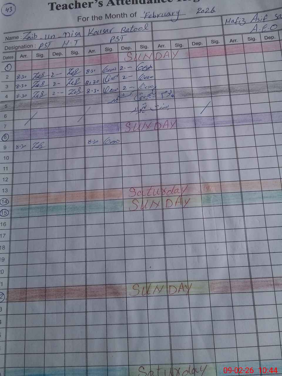 | Name: ZA**** UNNI**** Designation: (School Headmaster's/Headmistress's) PST Phone/Cell Number: 03**** |