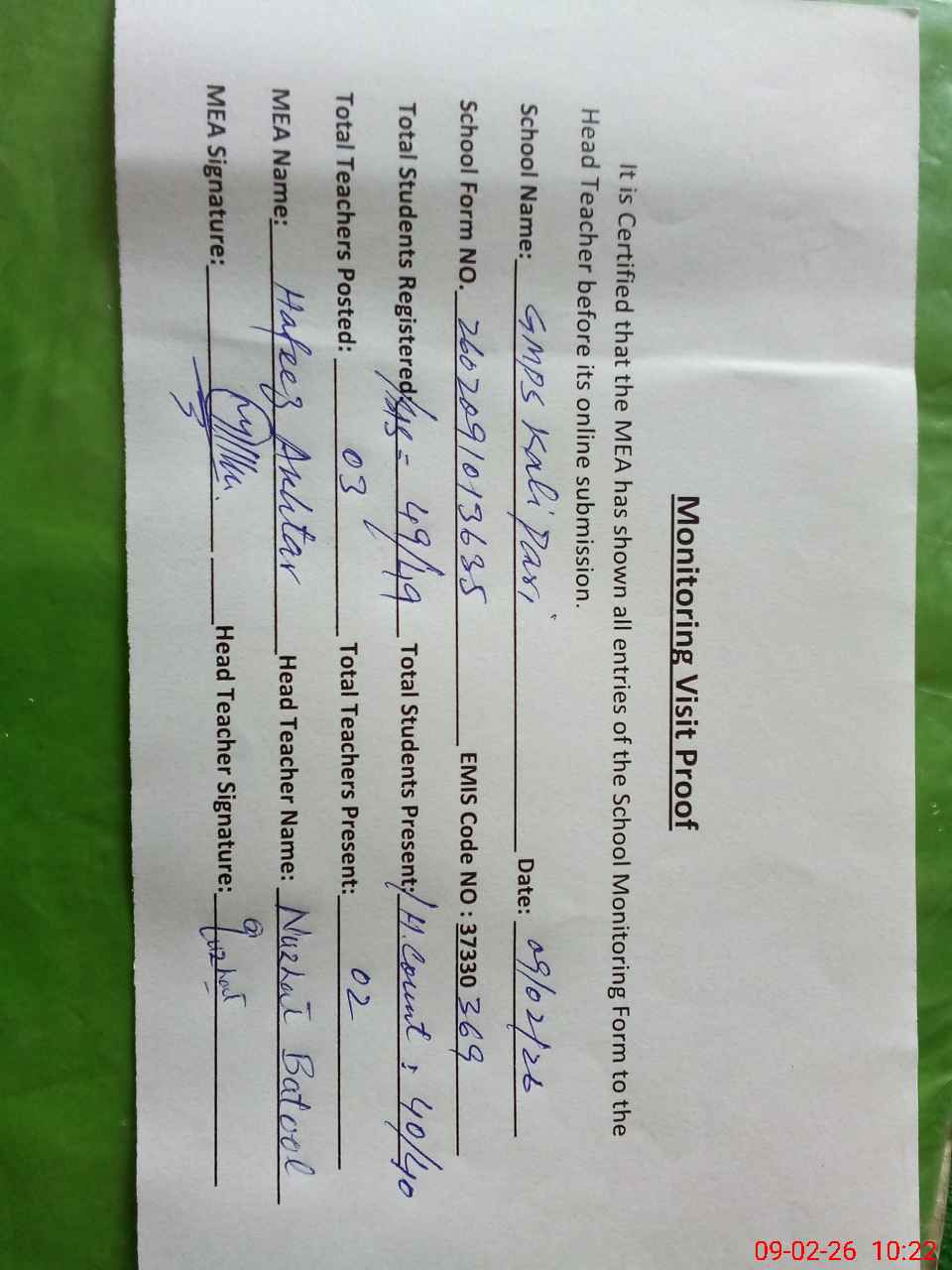 | EMIS Code: 37330369 | Name of School: GMPS KALI PARI | |||
