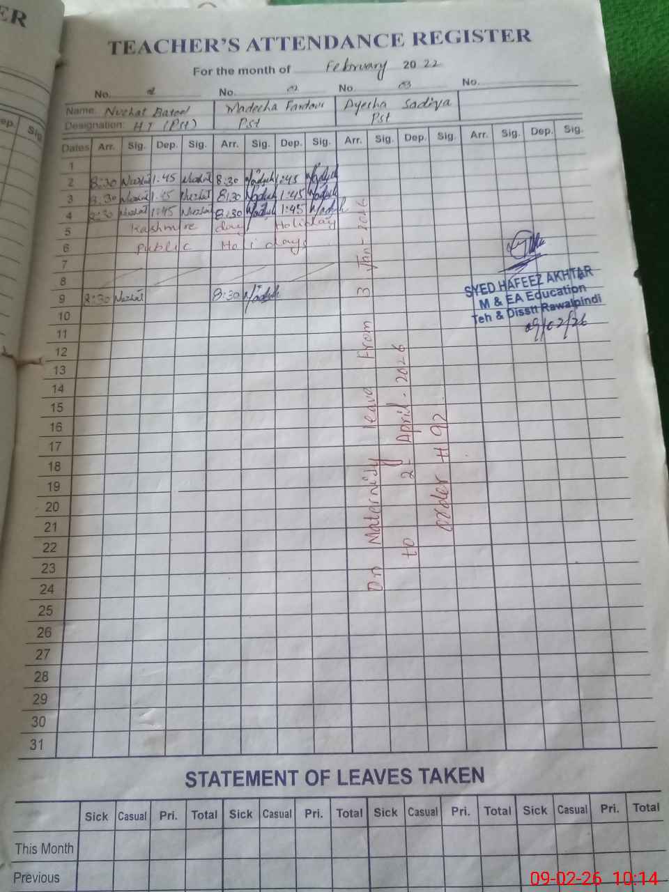 | 34**** | Ay**** Sa**** | PST Arts | Regular | 0 | 0 | 0 | 0 | 0 | 0 | 0 | 0 | 0 | Maternity |