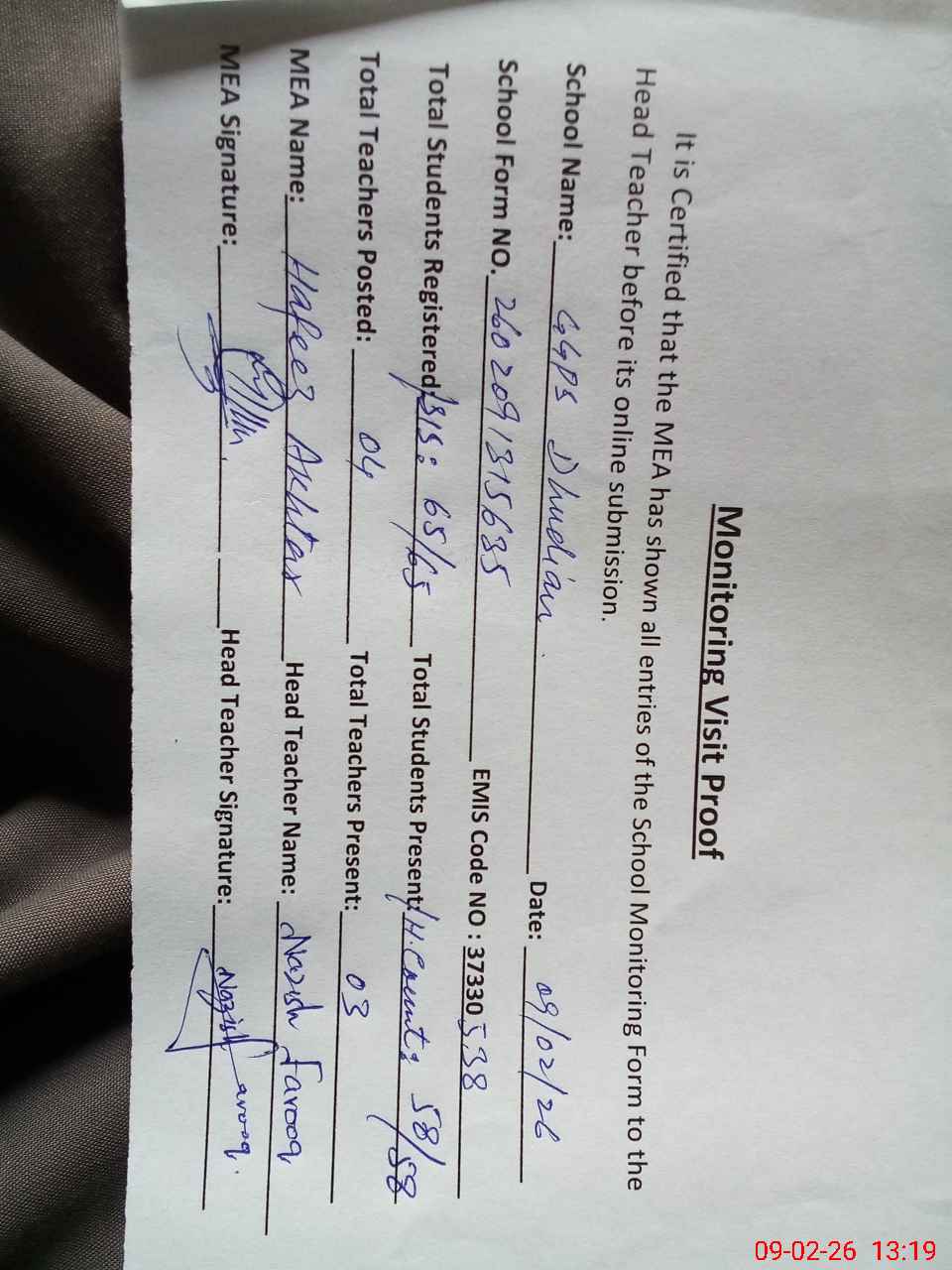 | EMIS Code: 37330538 | Name of School: GGPS DHUDIAN | |||