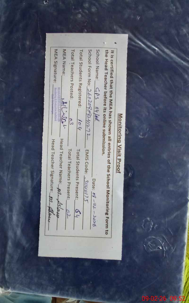 | EMIS Code: 31140175 | Name of School: GPS CHAK NO 114/6-R | |||