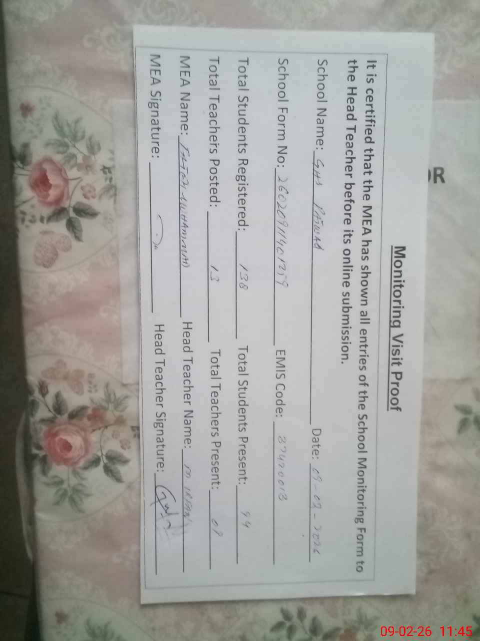 | EMIS Code: 37420013 | Name of School: GHS PATWALI | |||