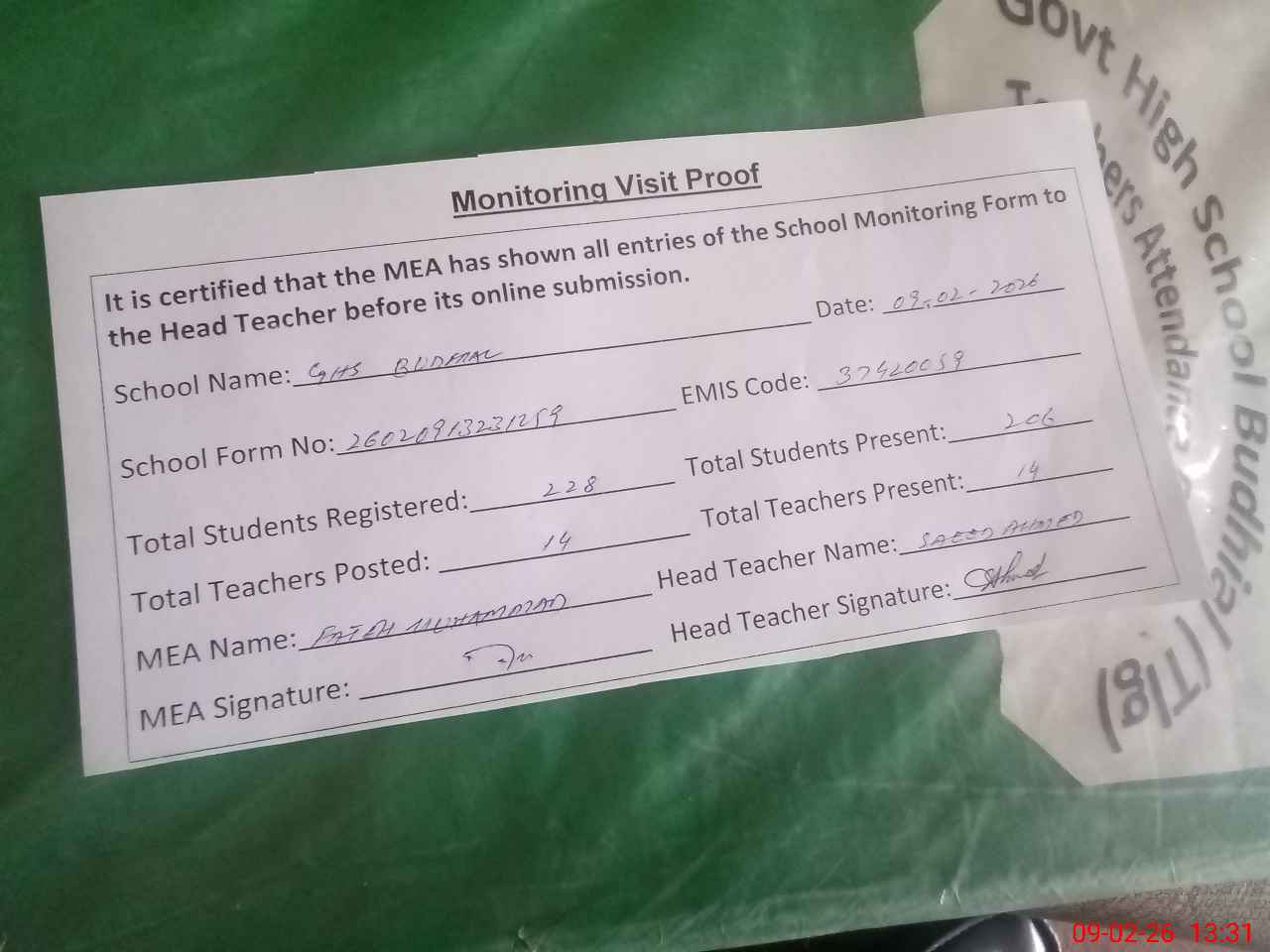 | EMIS Code: 37420059 | Name of School: GHS BUDHIAL | |||