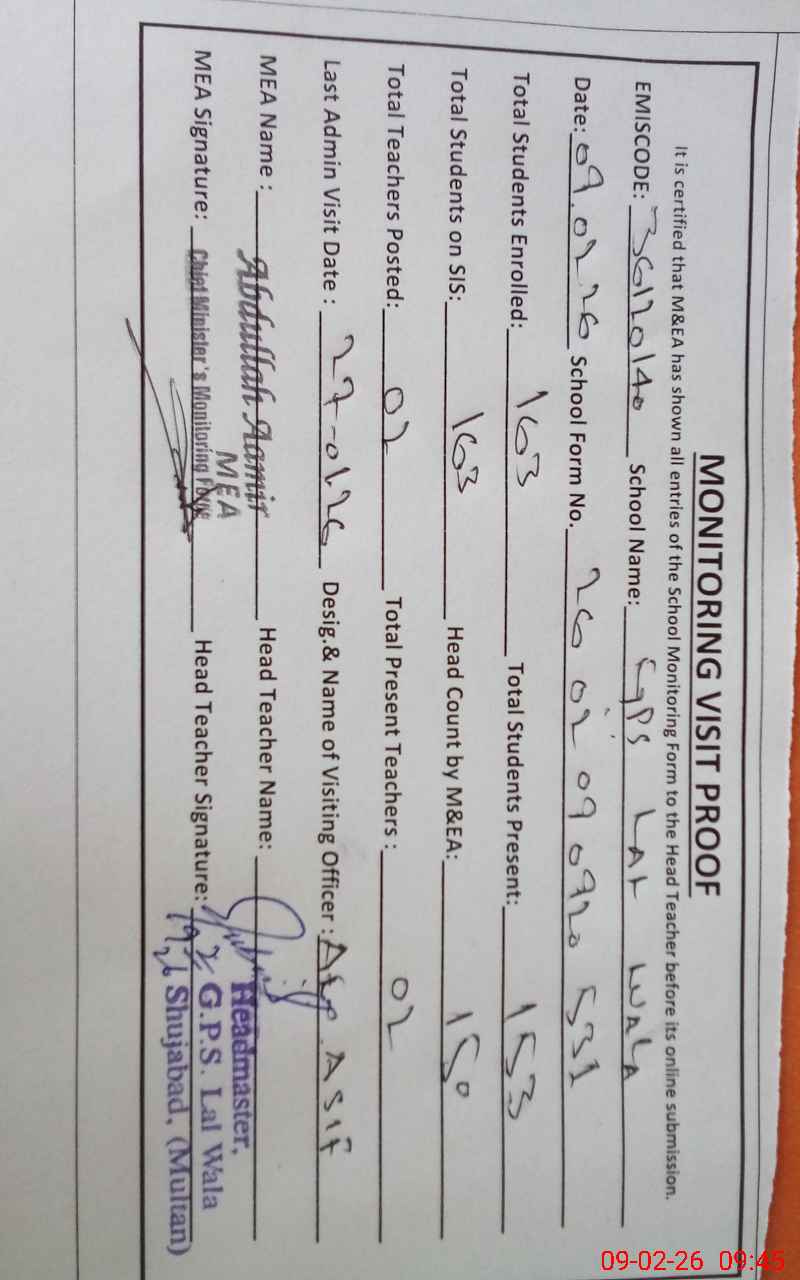 | EMIS Code: 36120140 | Name of School: GPS LAL WALA SHUJAHABAD | |||