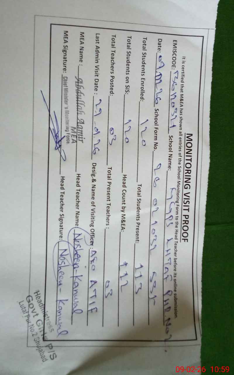 | EMIS Code: 36120321 | Name of School: GGPS LUTAF PUR NO 2 | |||