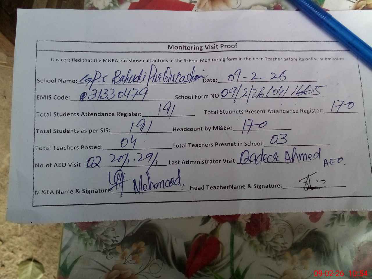 | EMIS Code: 31330479 | Name of School: GPS BAHAUDI PUR QURESHIAN | |||
