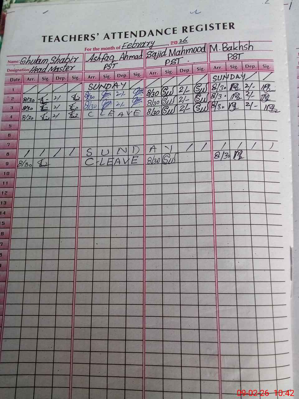 | Name: Gh**** Sh**** Designation: (School Headmaster's/Headmistress's) PST/PTC/JV Phone/Cell Number: 03**** |