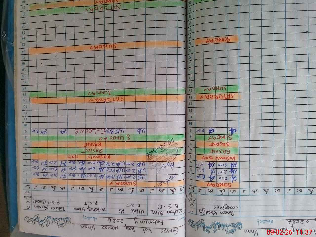 | CNIC | Full Name | Designation | R/C | Absence During Last Calender Month |