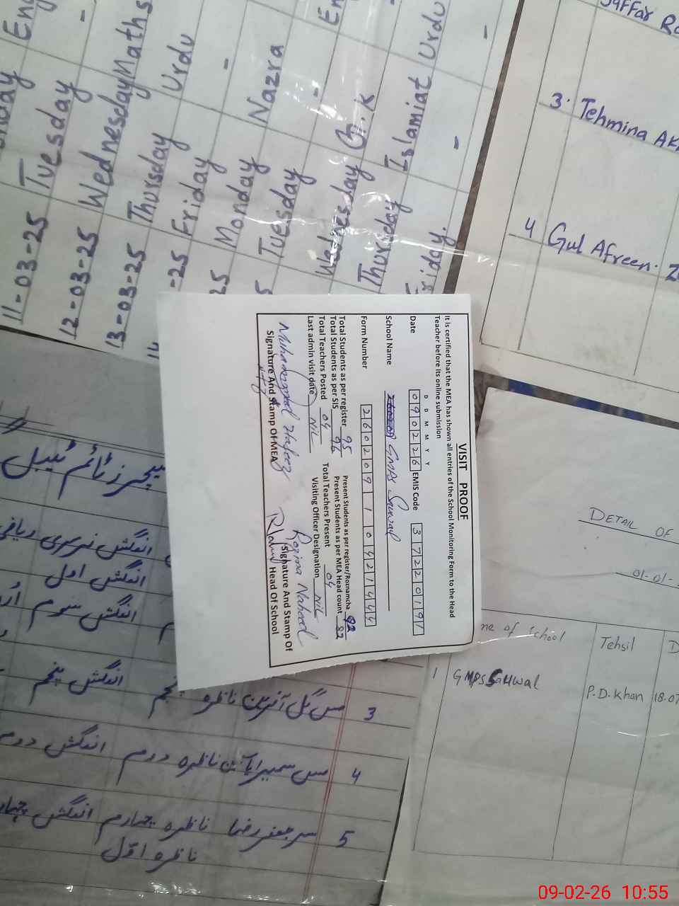 | Attendance Register | Head Teacher | MEA with School | Visit Proof |