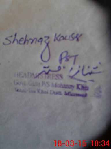 | Name: TA**** Designation: (School Headmaster's/Headmistress's) PST Phone/Cell Number: 03**** |