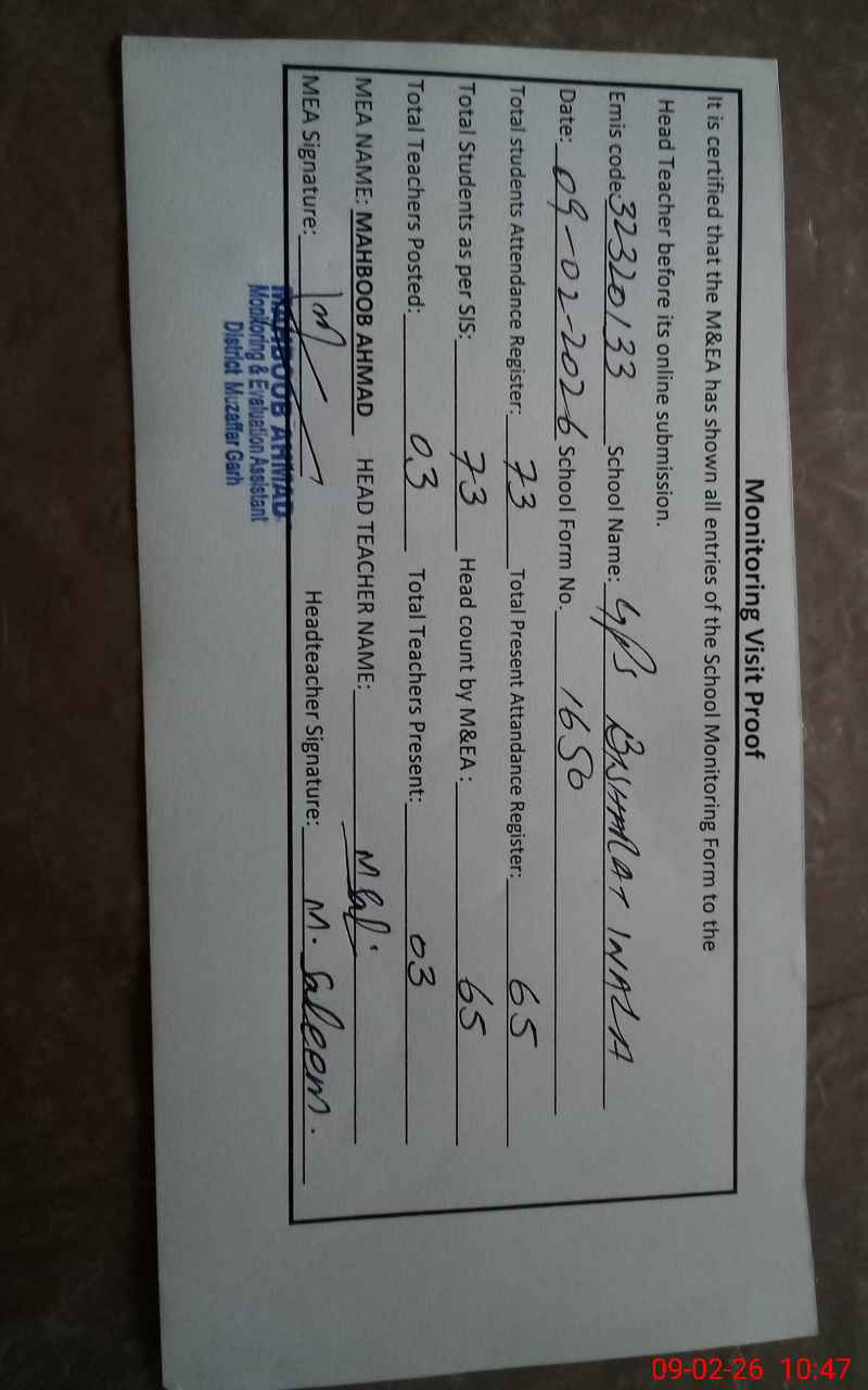 | EMIS Code: 32320133 | Name of School: GPS BASTI BISHARAT WALA | |||