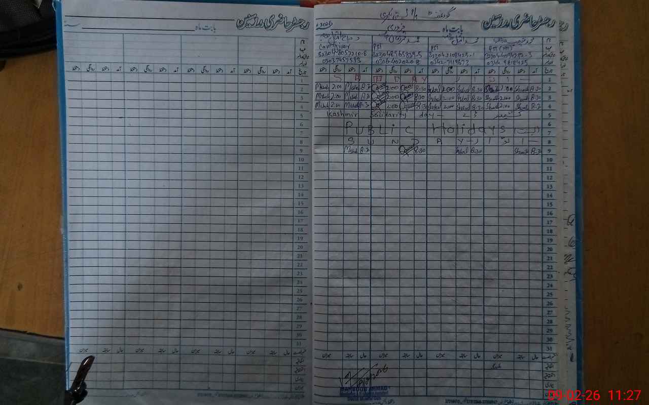 | CNIC | Full Name | Designation | R/C | Absence During Last Calender Month |