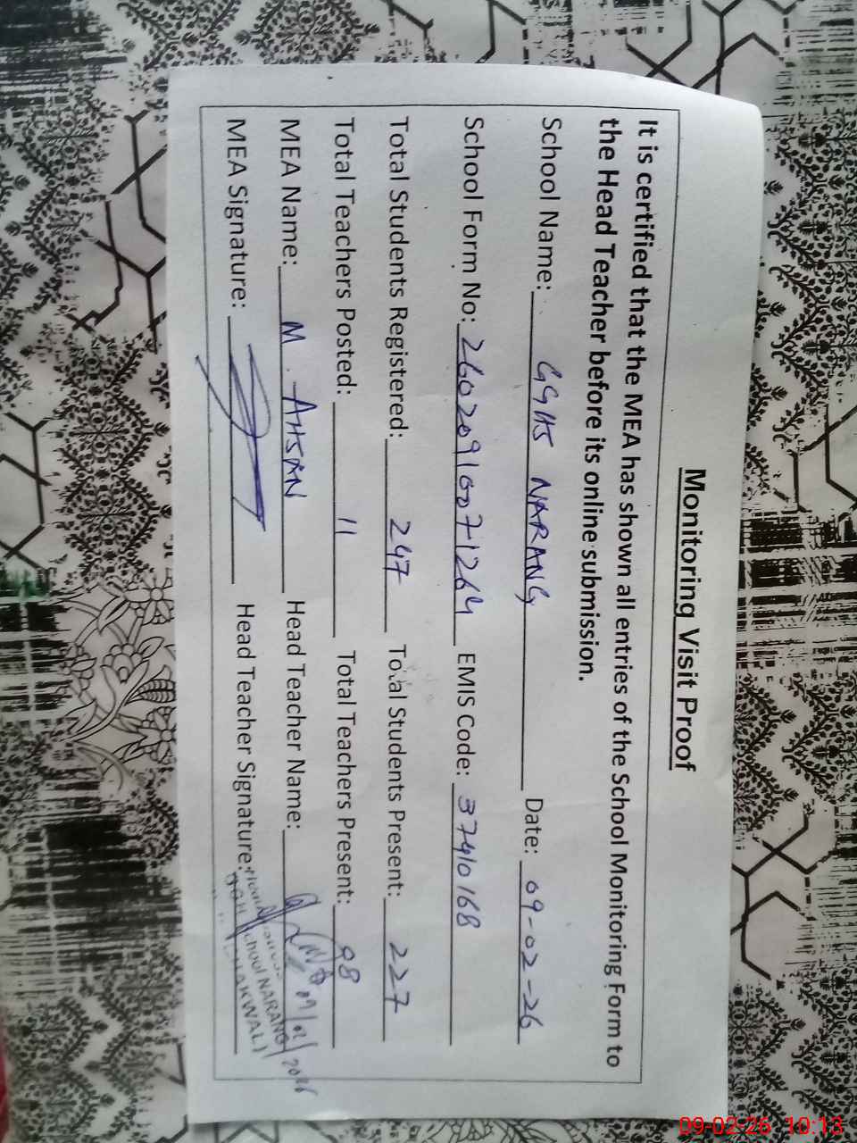 | Certified that this School was Inspected by the Undersigned MEA/DMO Today and the Information Stated Above is as Per Record. | |||||