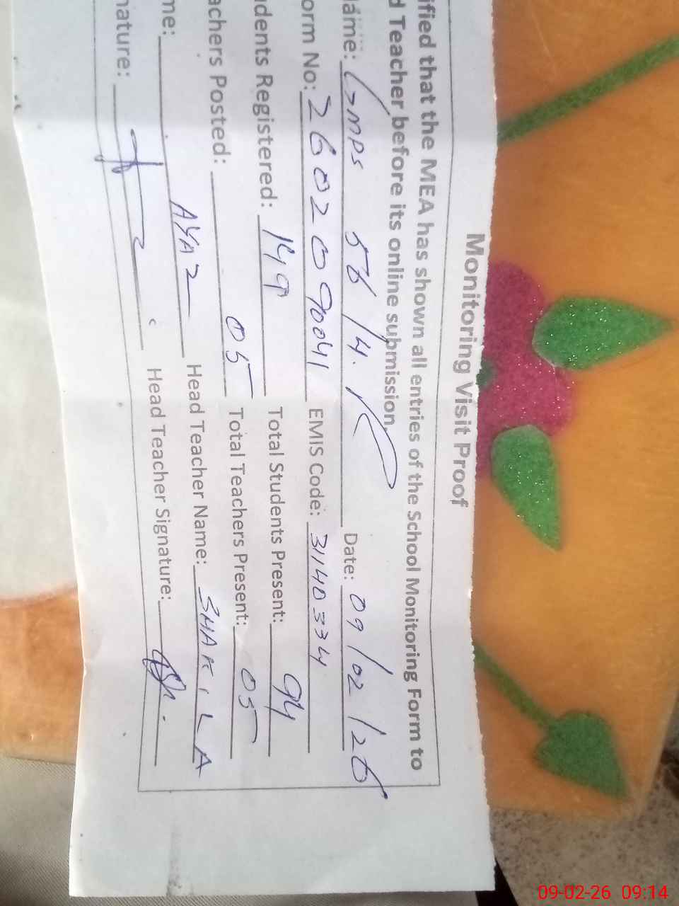 | EMIS Code: 31140334 | Name of School: GMPS CHAK NO. 56/4-R | |||