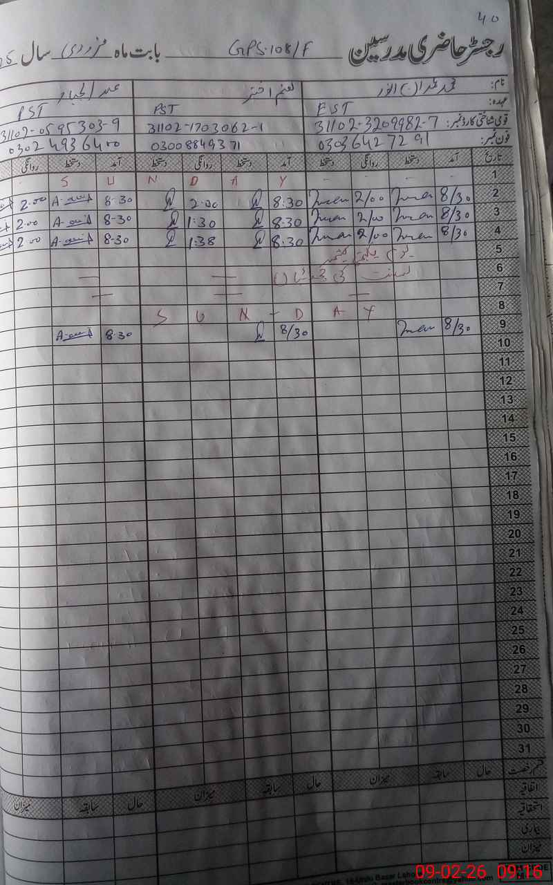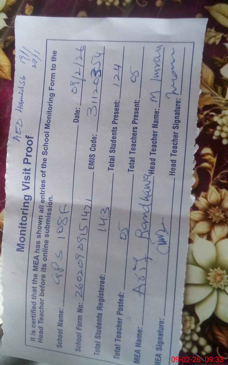 | Name: MU**** Im**** Designation: (School Headmaster's/Headmistress's) ESt Phone/Cell Number: 03**** |