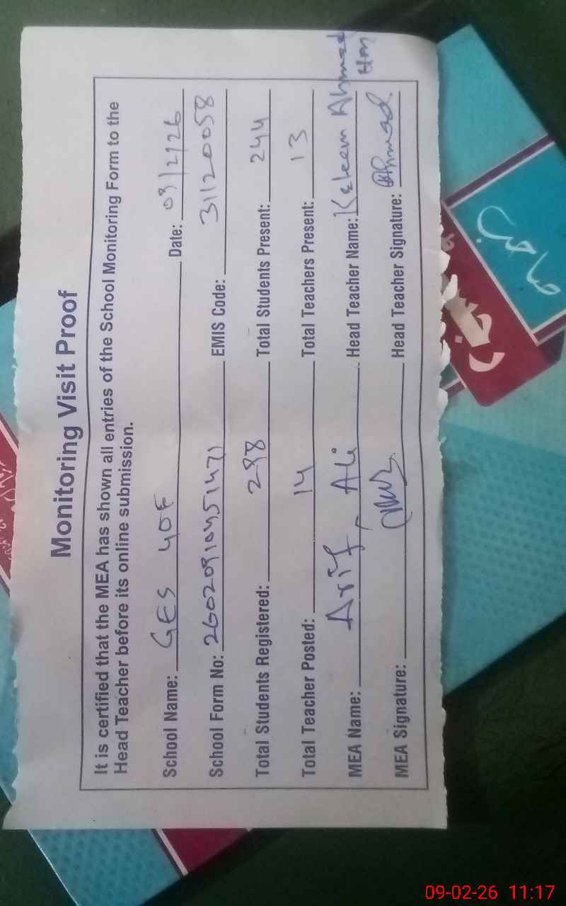 | EMIS Code: 31120058 | Name of School: GES CHAK NO 40/F | |||