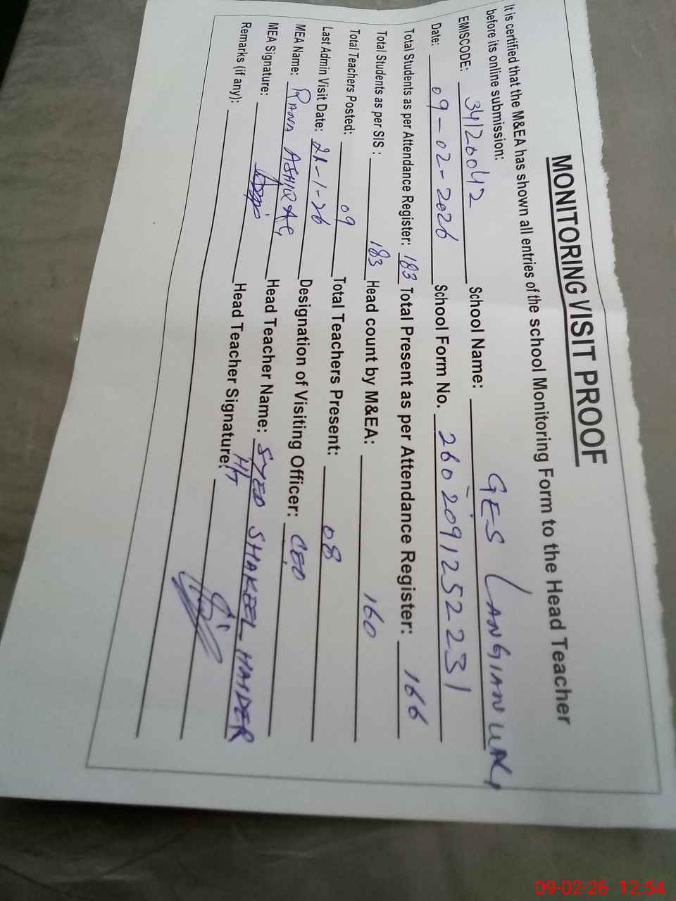 | Certified that this School was Inspected by the Undersigned MEA/DMO Today and the Information Stated Above is as Per Record. | |||||