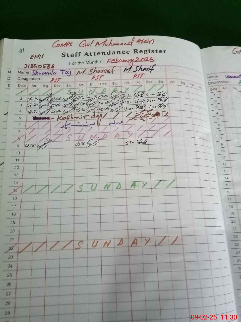 | Remarks (Use Separate Page if Required): Today attendance not mark on SIS | |||||