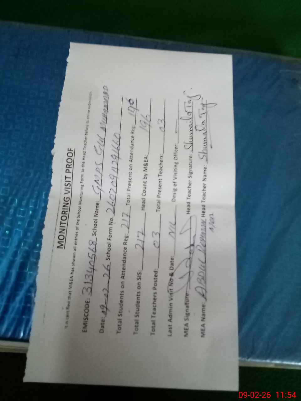 | EMIS Code: 31340568 | Name of School: GMPS GUL MUHAMMAD | |||