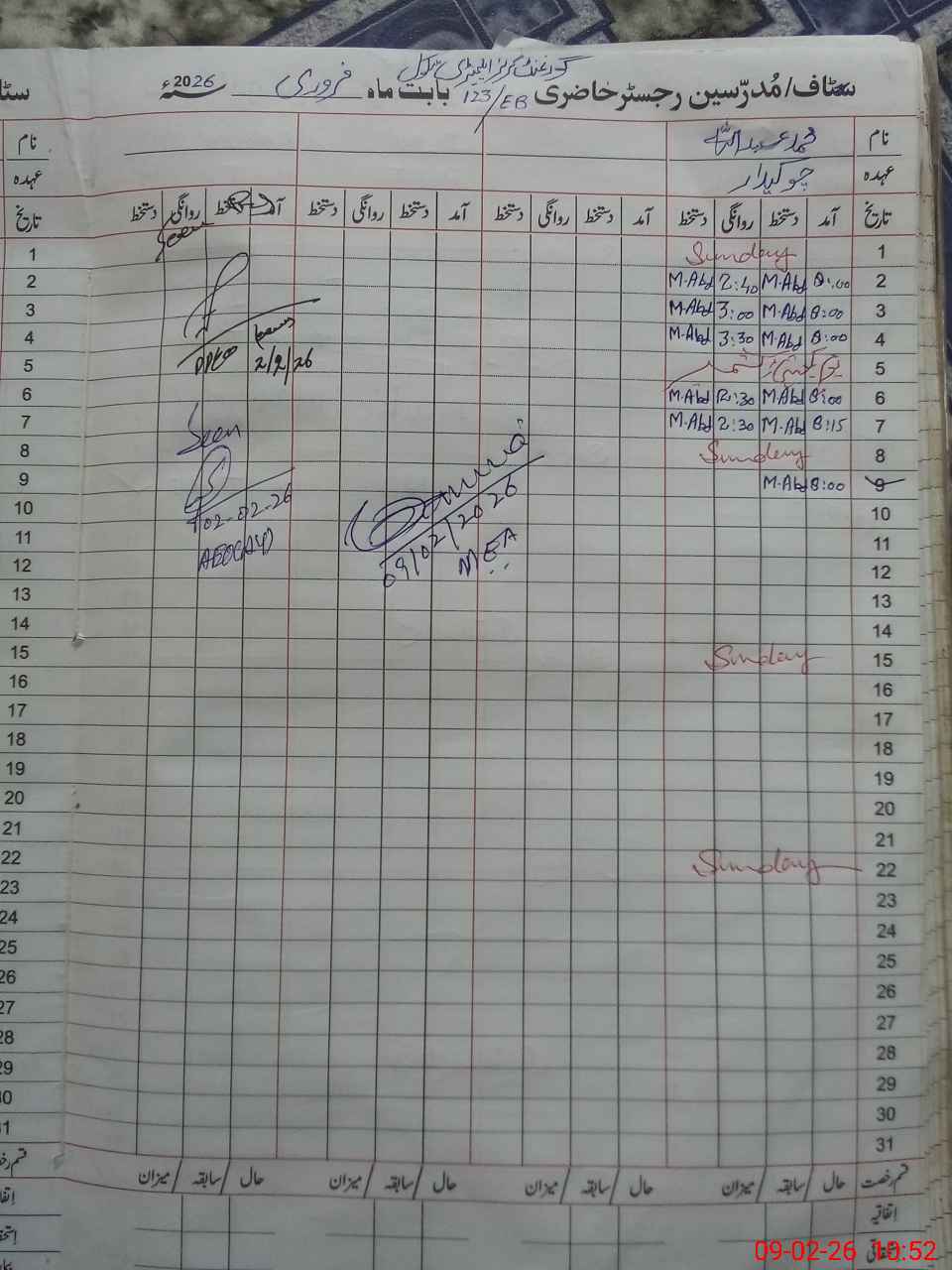 | Name: SY**** ZA**** RA**** Designation: (School Headmaster's/Headmistress's) EST Phone/Cell Number: 03**** |