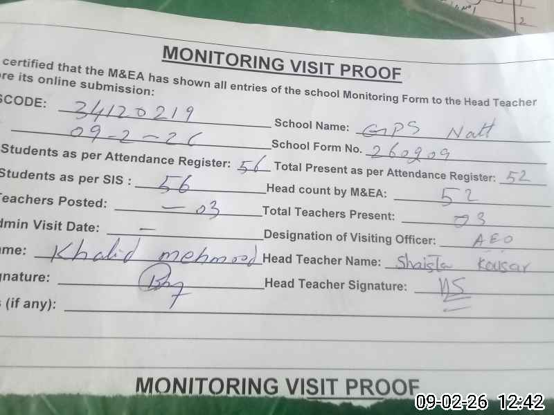 | Attendance Register | Head Teacher | MEA with School | Visit Proof |