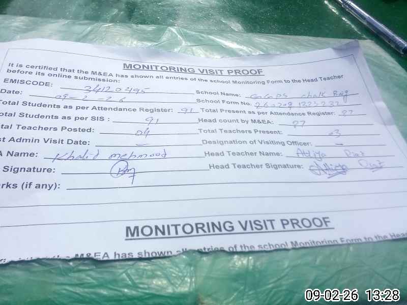 | EMIS Code: 34120495 | Name of School: GGPS CHAK BAIG | |||