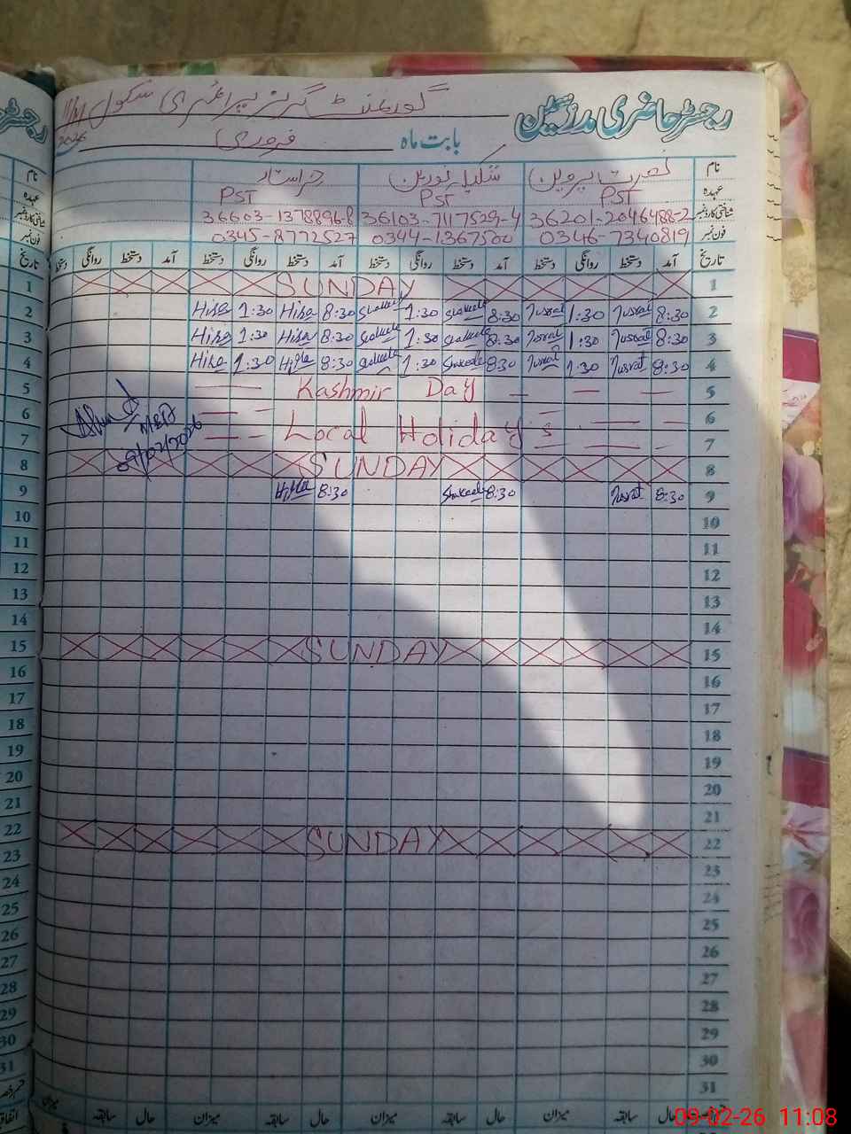 | Name: Nu**** Pe**** Designation: (School Headmaster's/Headmistress's) PTC/JV Phone/Cell Number: 03**** |