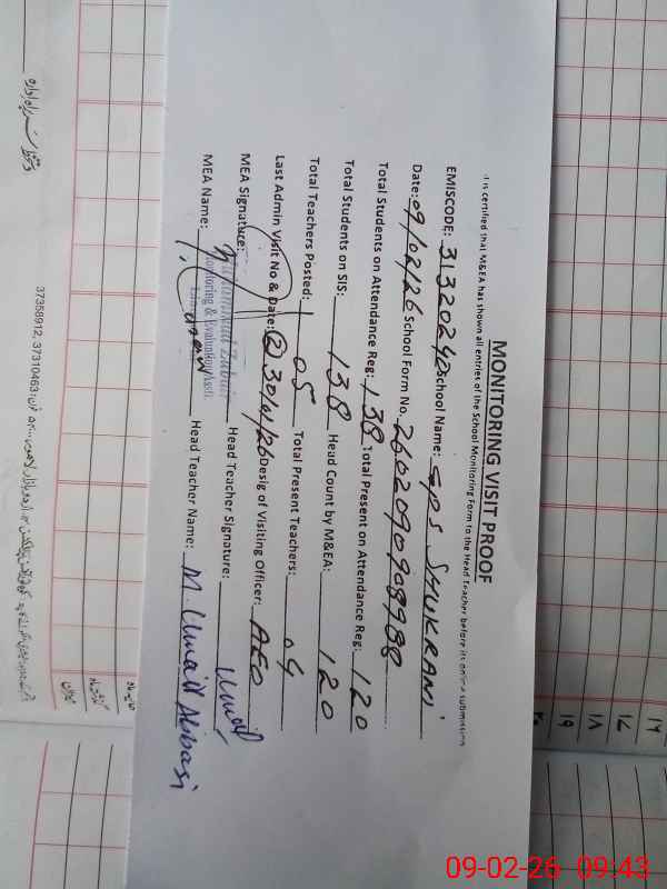 | EMIS Code: 31320240 | Name of School: GPS SHUKRANI | |||