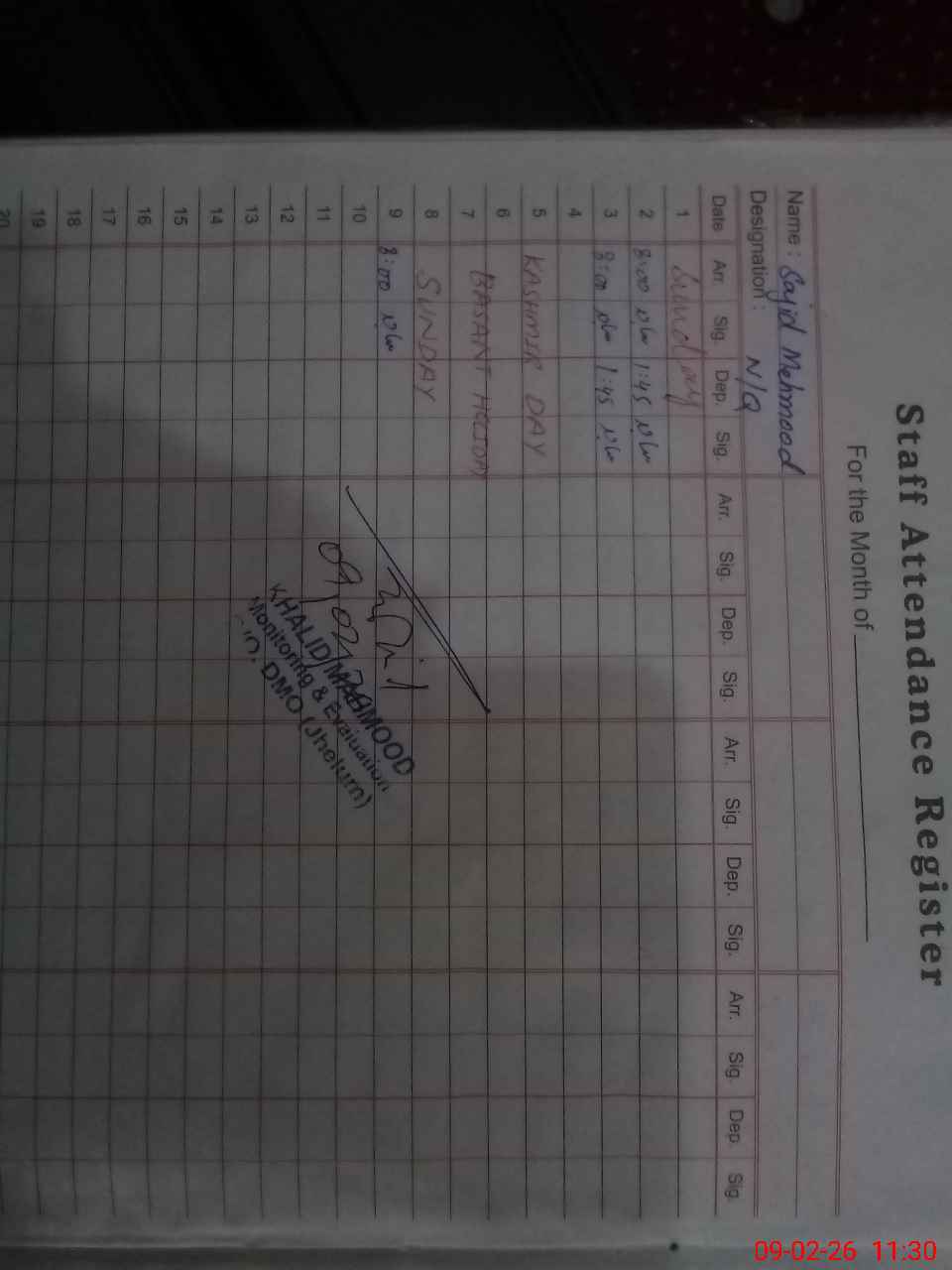 | CNIC | Full Name | Designation | R/C | Absence During Last Calender Month |