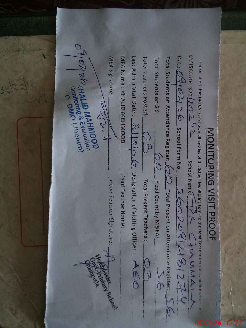 | EMIS Code: 37240242 | Name of School: GPS CHAMMALA | |||