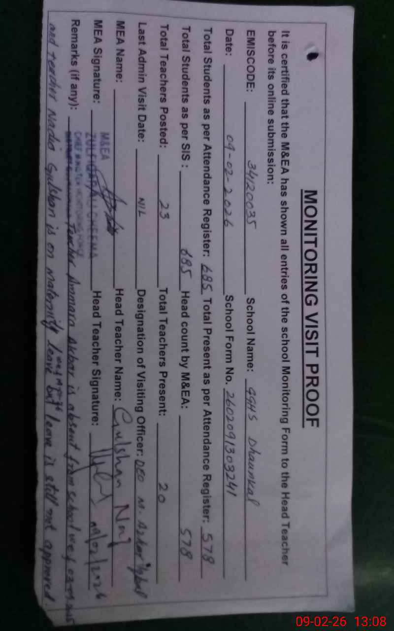 | EMIS Code: 34120035 | Name of School: GGHS DHAUNKAL | |||