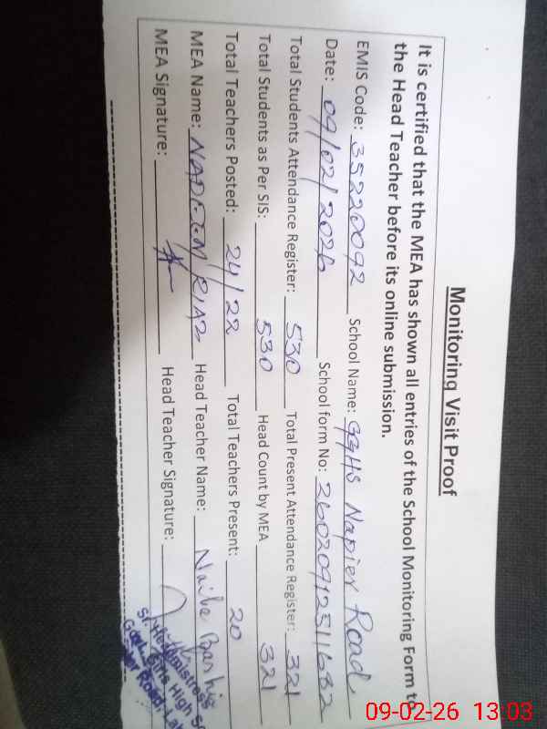 | EMIS Code: 35220092 | Name of School: GGHS NAPIER ROAD | |||
