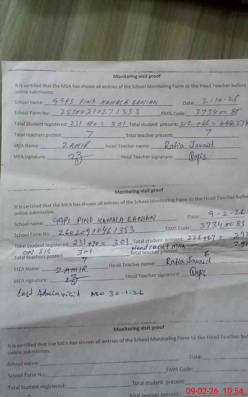 | EMIS Code: 37340085 | Name of School: GGPS PIND KAMALA BANIAN | |||