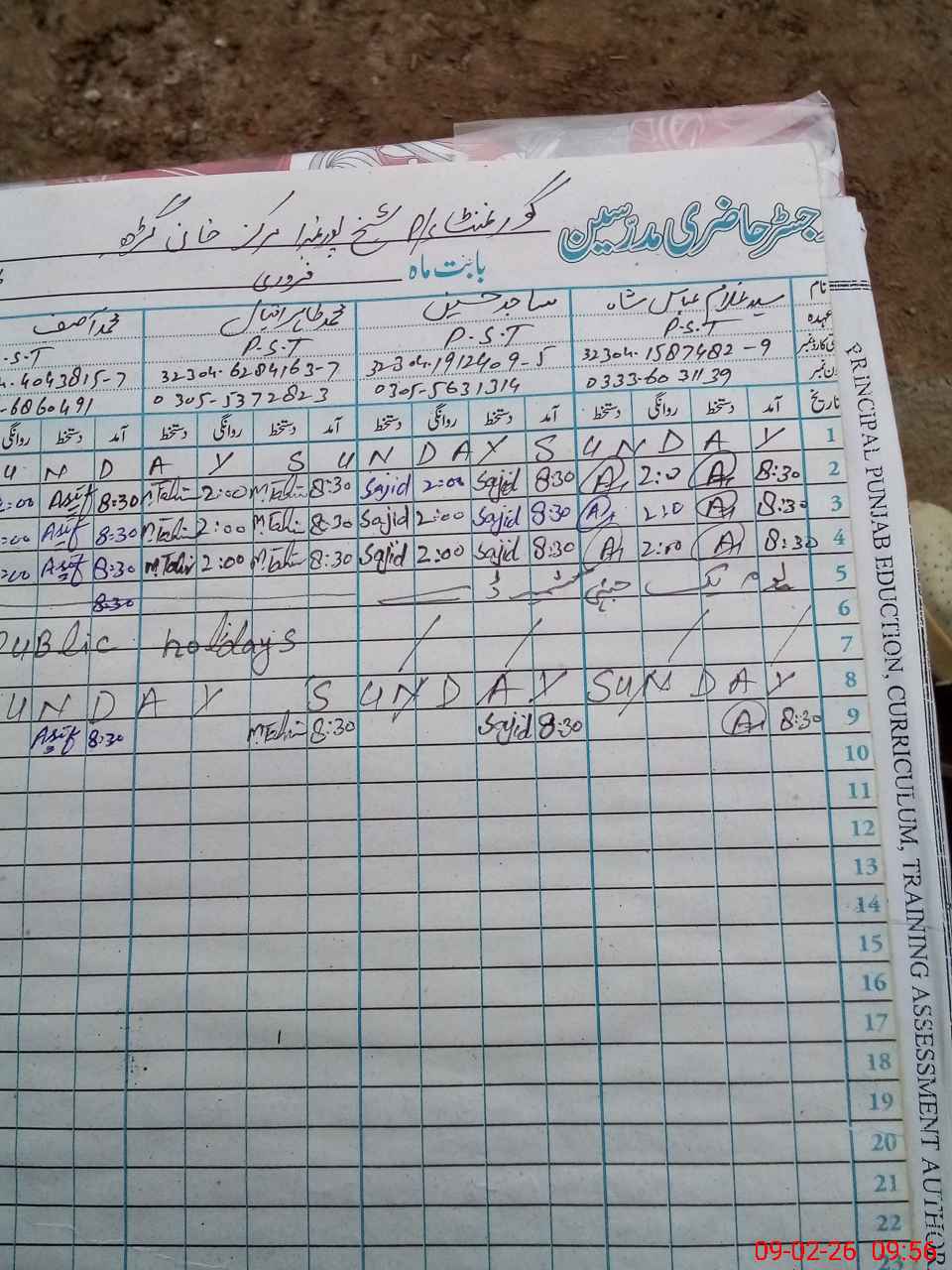 | Name: SY**** GH**** AB**** Designation: (School Headmaster's/Headmistress's) PST/PTC/JV Phone/Cell Number: 03**** |