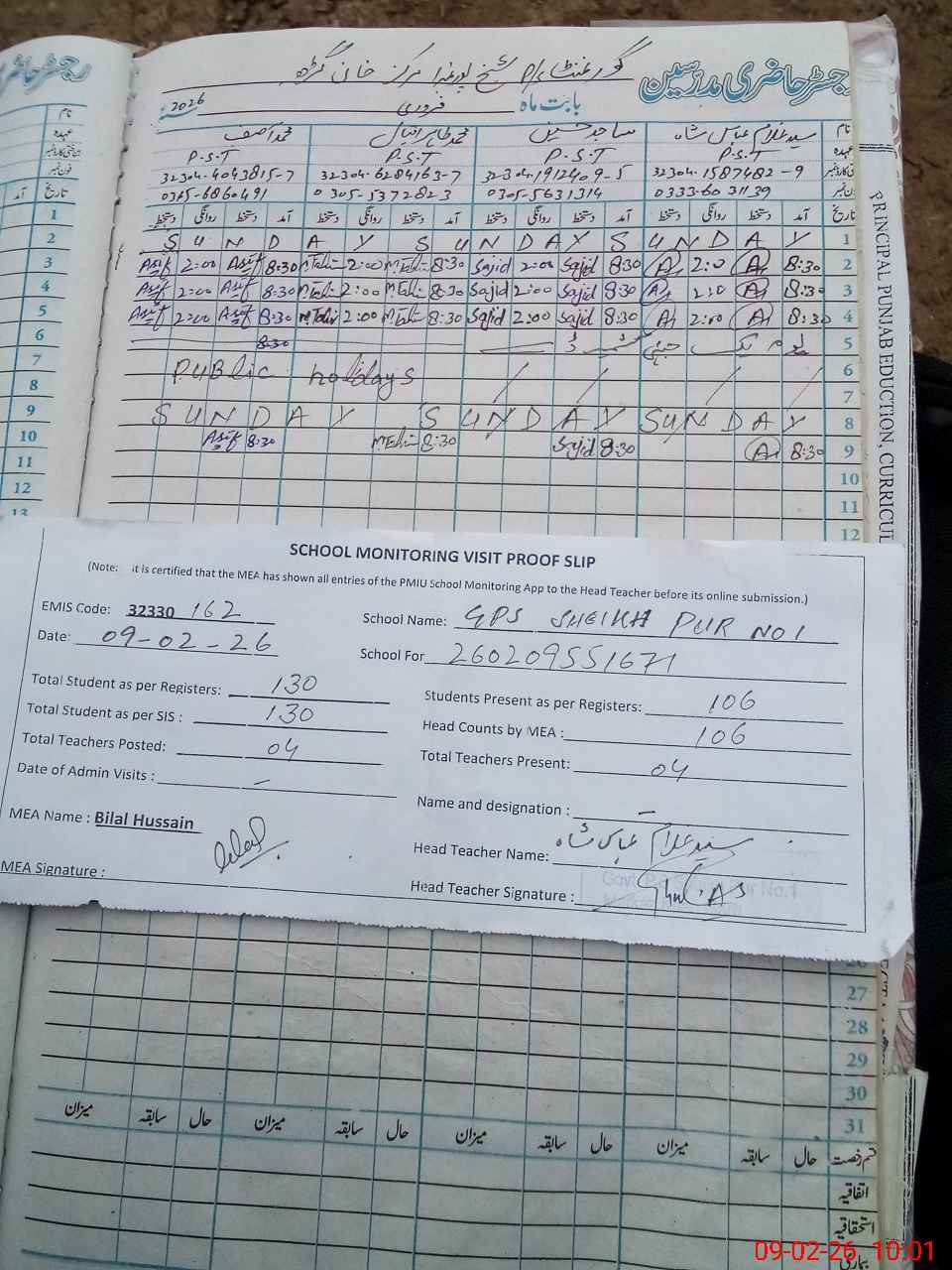 | EMIS Code: 32330162 | Name of School: GPS SHEIKH PUR NO. 1 | |||