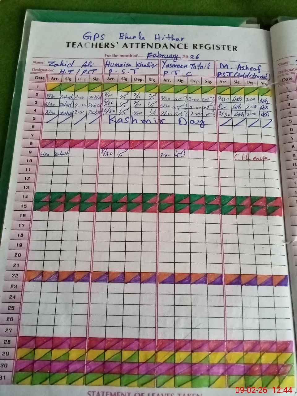 | CNIC | Full Name | Designation | R/C | Absence During Last Calender Month |