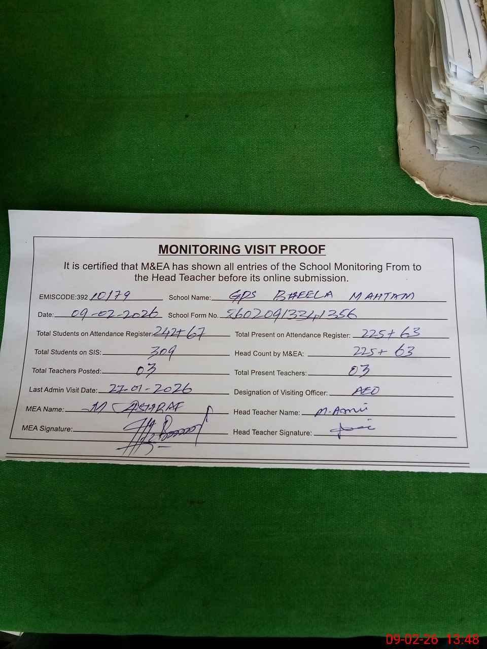 | EMIS Code: 39210179 | Name of School: GPS BHEELA MAHTAM | |||