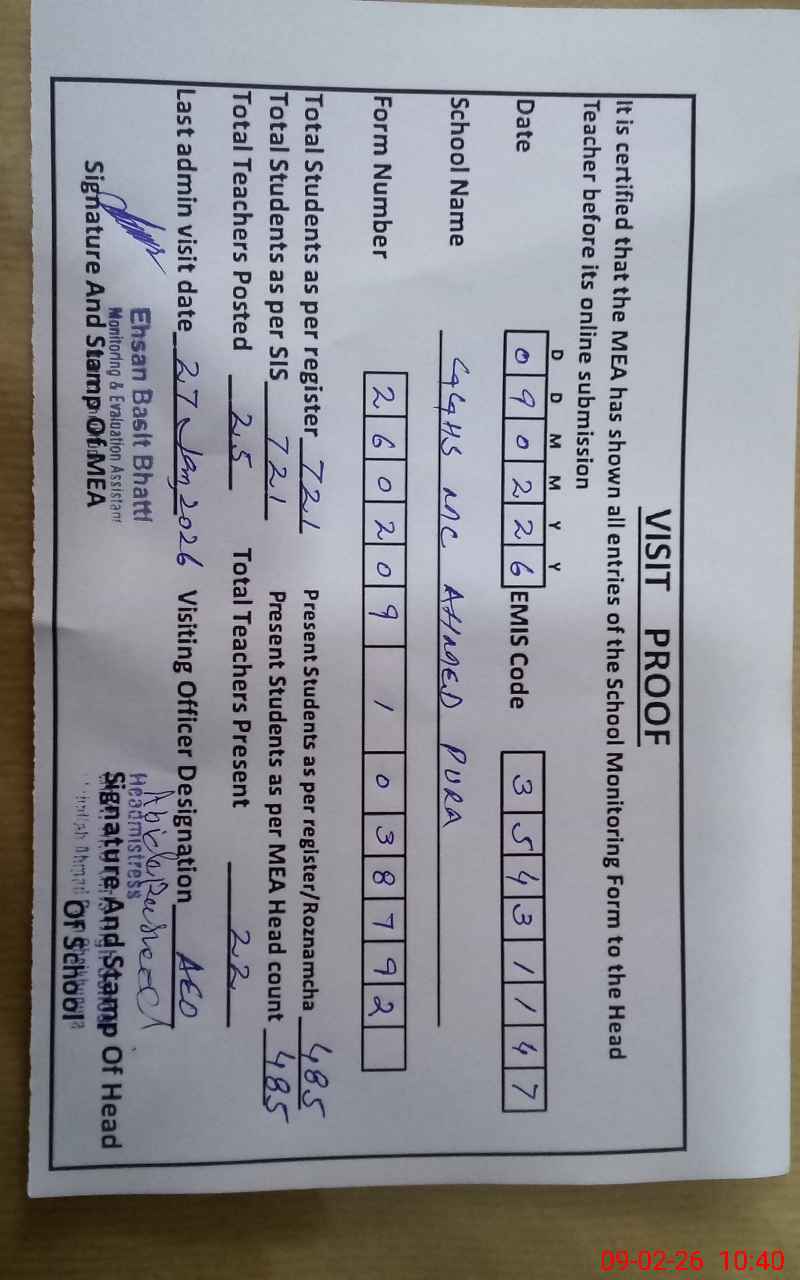 | EMIS Code: 35431147 | Name of School: GGHS MC AHMED PURA | |||