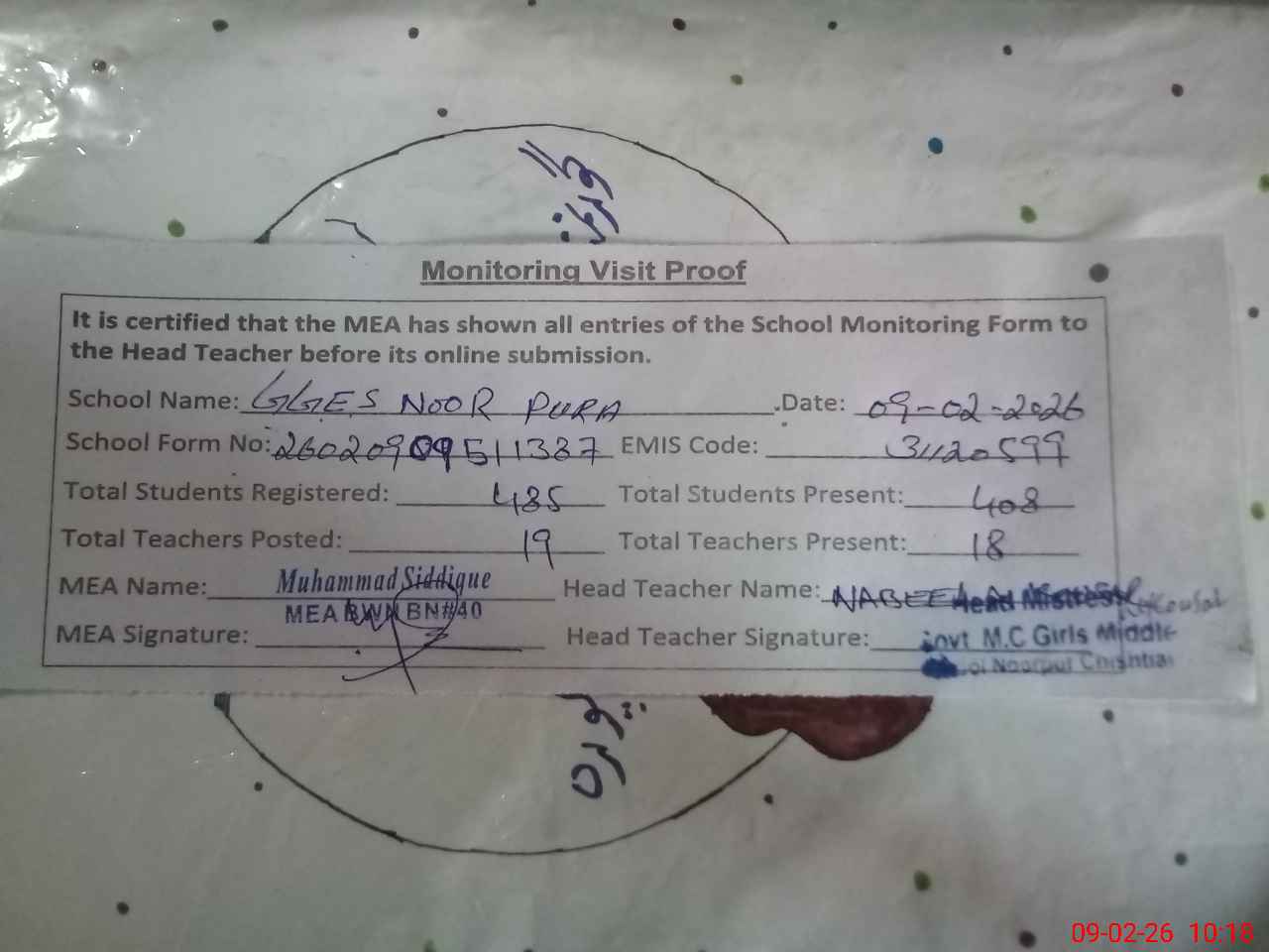 | EMIS Code: 31120599 | Name of School: GGES MC NOOR PURA | |||