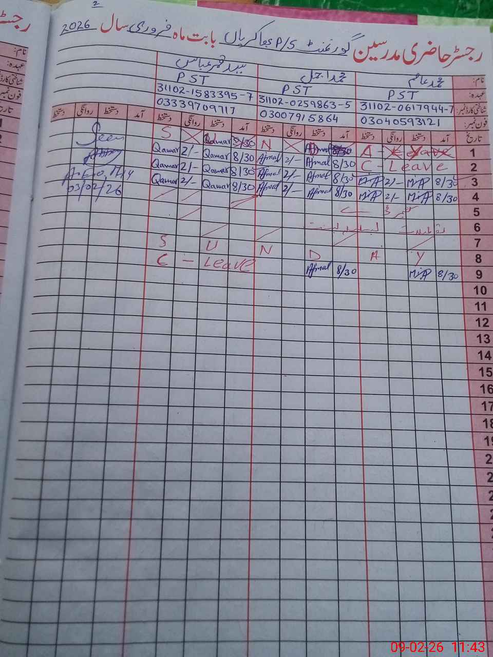 | 31**** | Sy**** Qa**** Ab**** | PST Science/Maths | Regular | 6 | 0 | 0 | 0 | 0 | 0 | 0 | 0 | 6 | Casual |