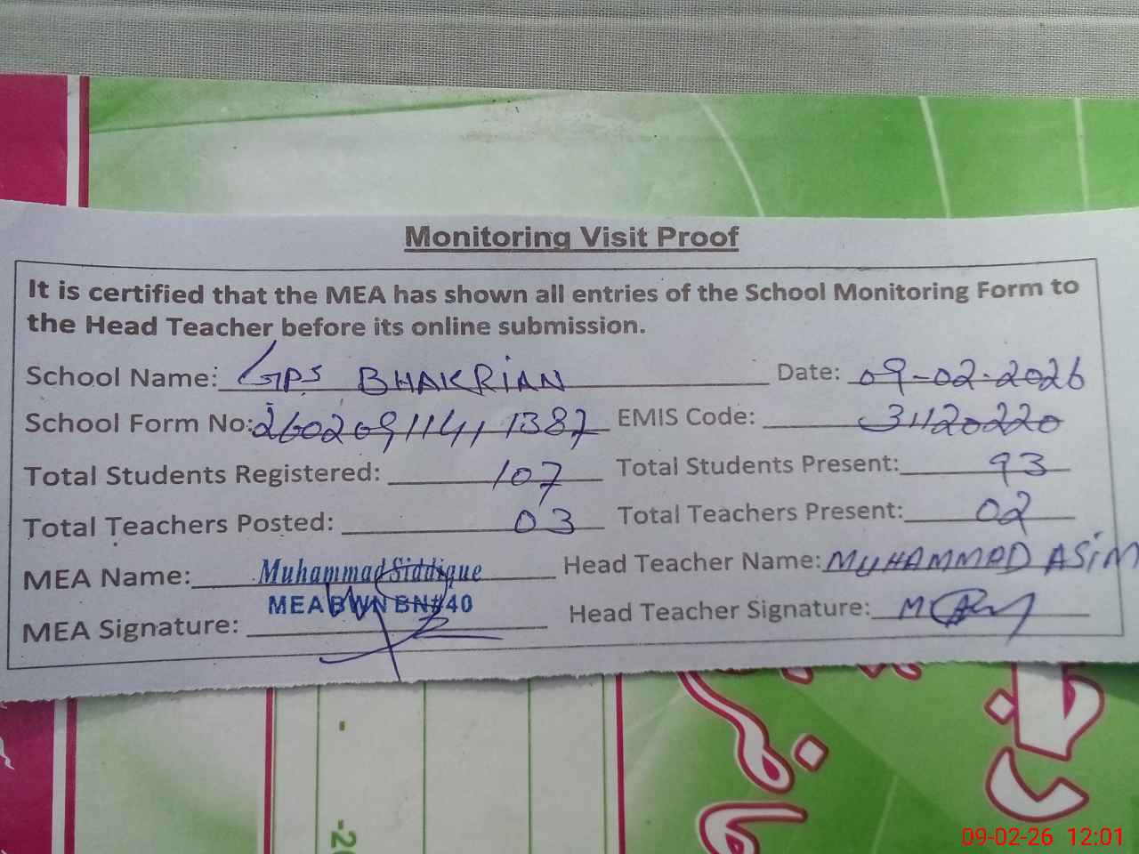 | EMIS Code: 31120220 | Name of School: GPS BHAKHRIAN | |||
