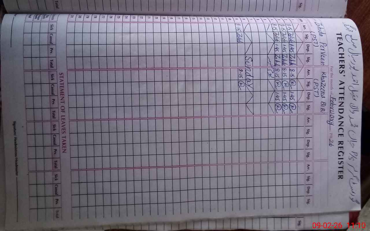 | Name: Kh**** Bi**** Designation: (School Headmaster's/Headmistress's) PST Phone/Cell Number: 03**** |