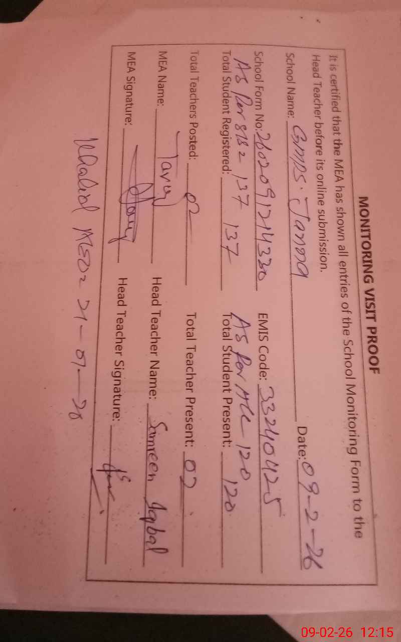 | Certified that this School was Inspected by the Undersigned MEA/DMO Today and the Information Stated Above is as Per Record. | |||||